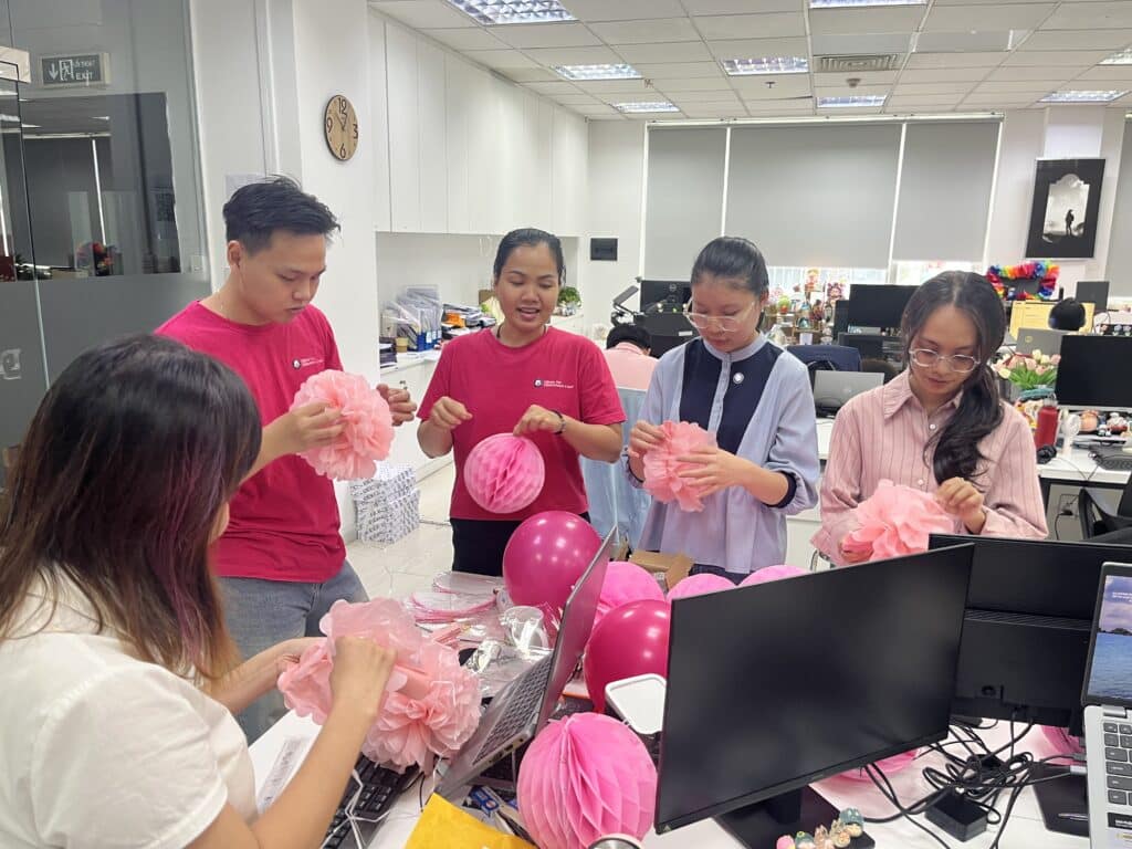 Each regional team found their own ways to honour Eileen. In Thailand, our colleagues supported a breast cancer survivors’ charity, sewing prosthetic breasts into bras to donate across Bangkok. The office turned into a sewing circle, people chatting, laughing, and helping others, the perfect reflection of Pink Week’s spirit.